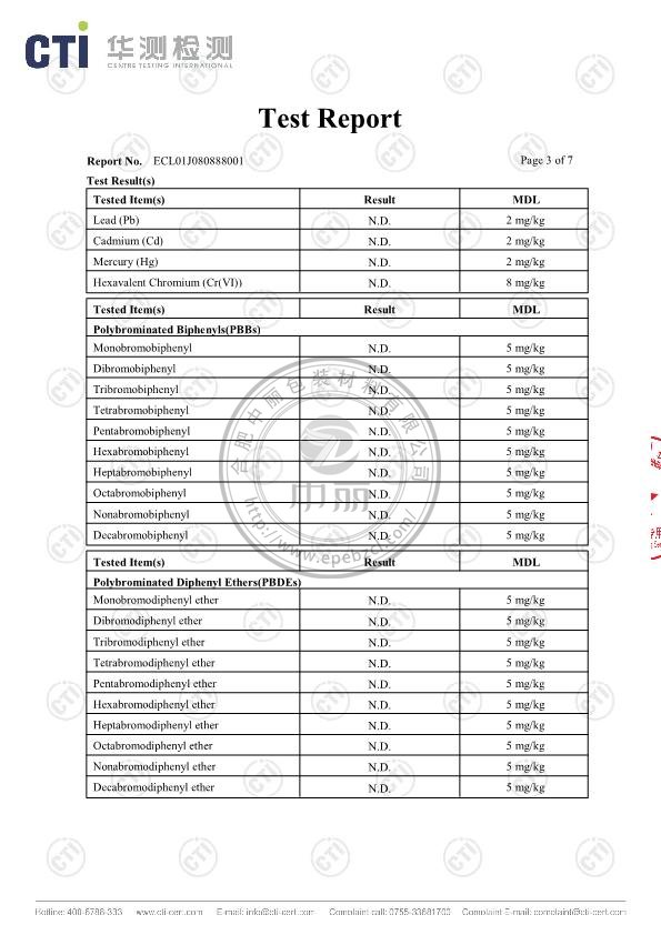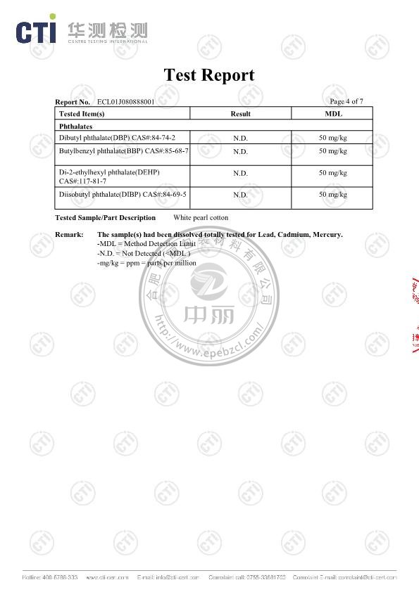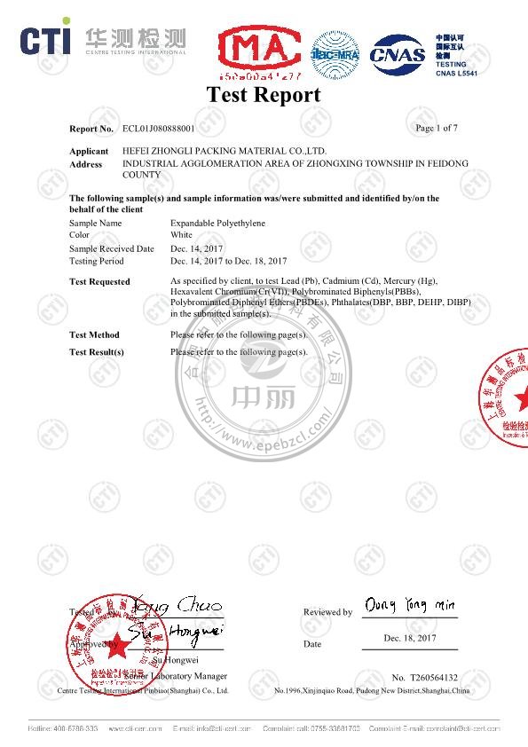 弘郢珍珠棉英文檢測(cè)報(bào)告