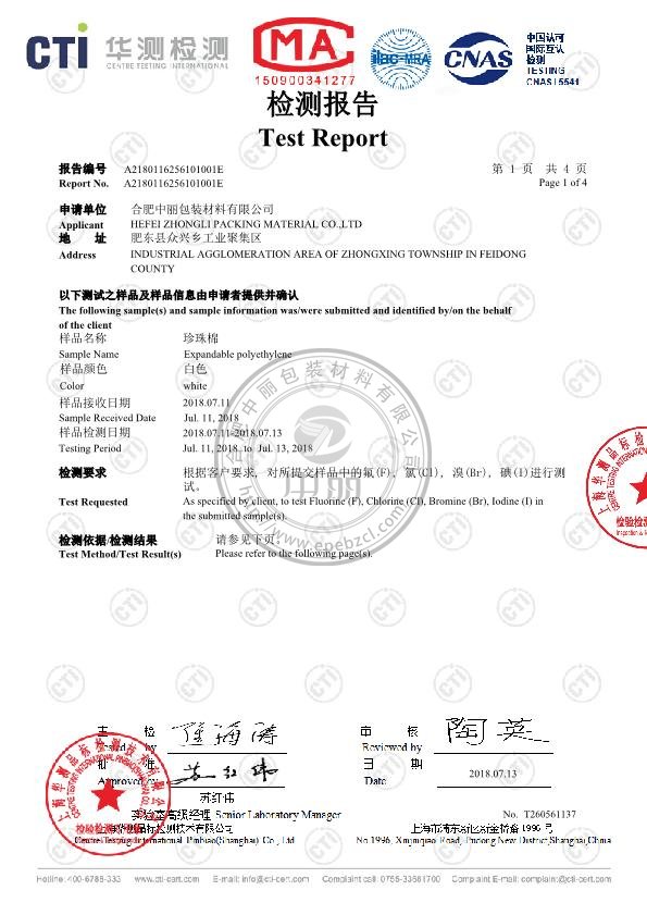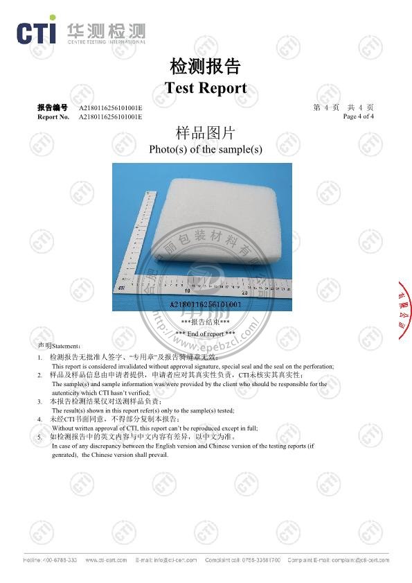 弘郢實業(yè)珍珠棉ISO檢測報告